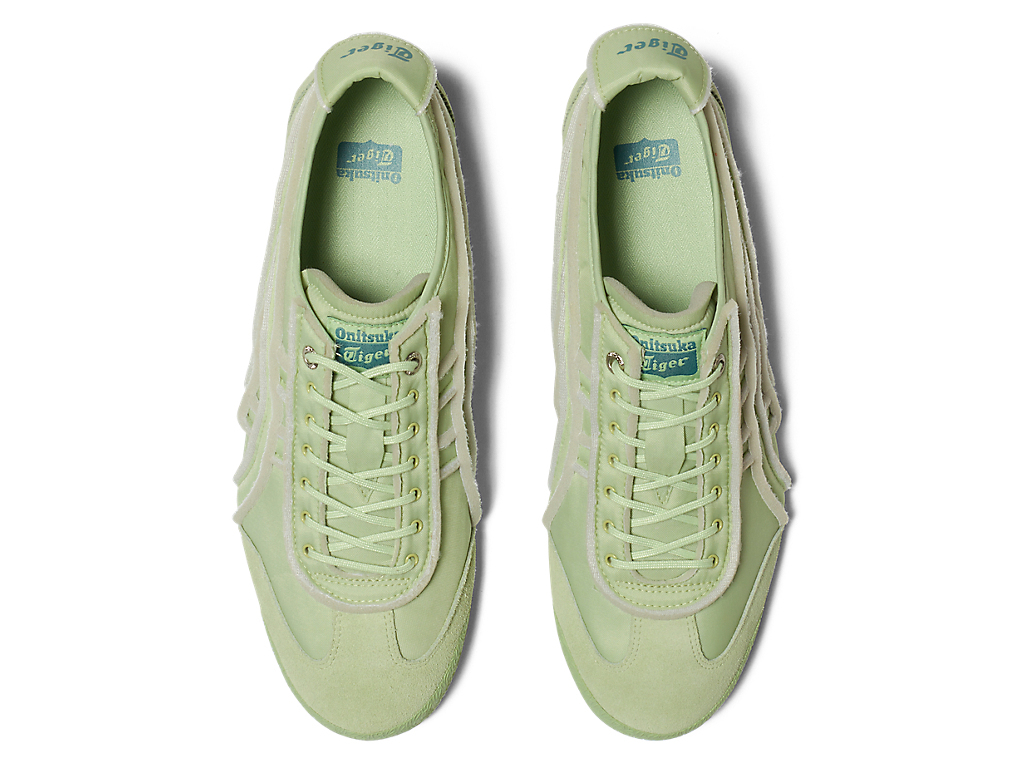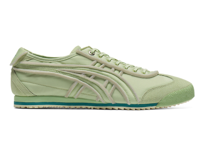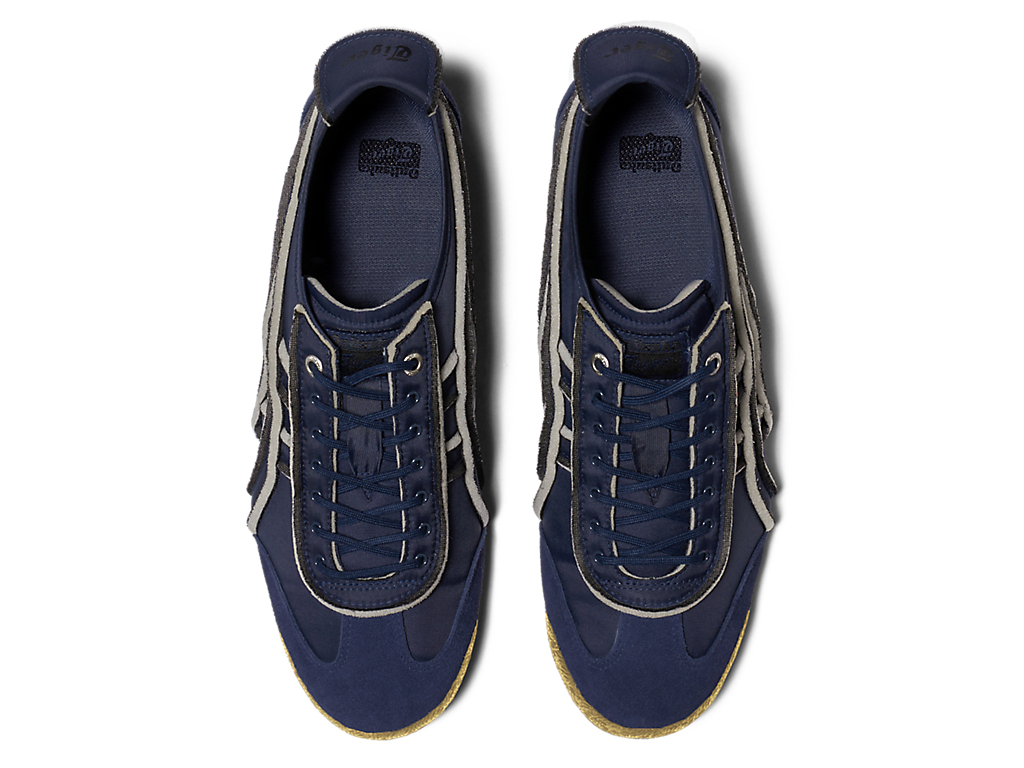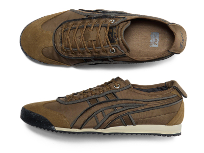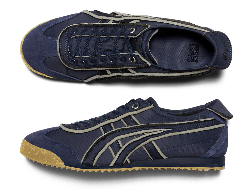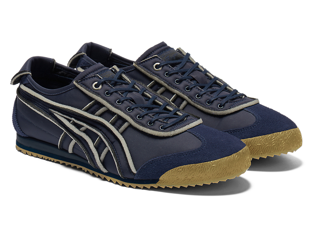 オニツカタイガーストライプや薄底のスタイル、かかとのクロスパーツなど「MEXICO 66」のアイコニックな要素を継承しながら再構築したアイテム。