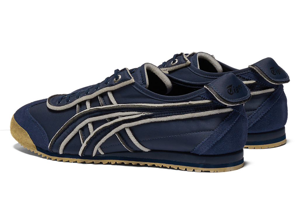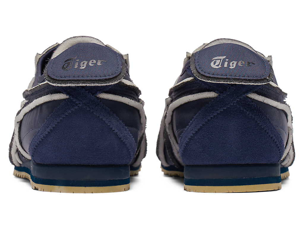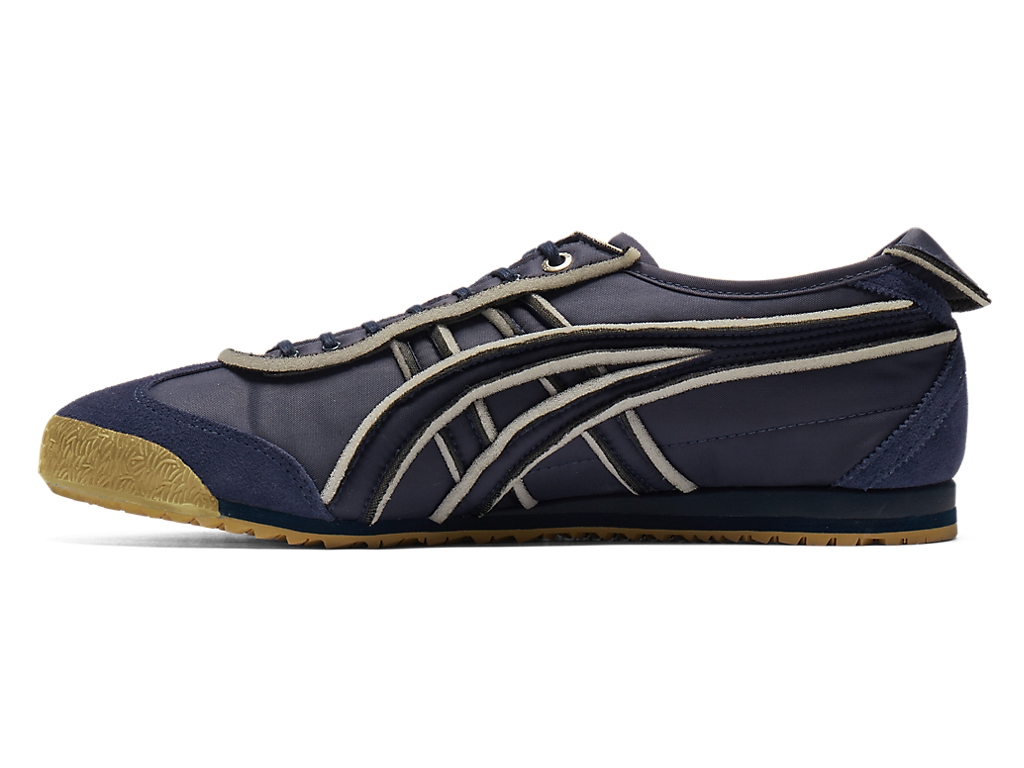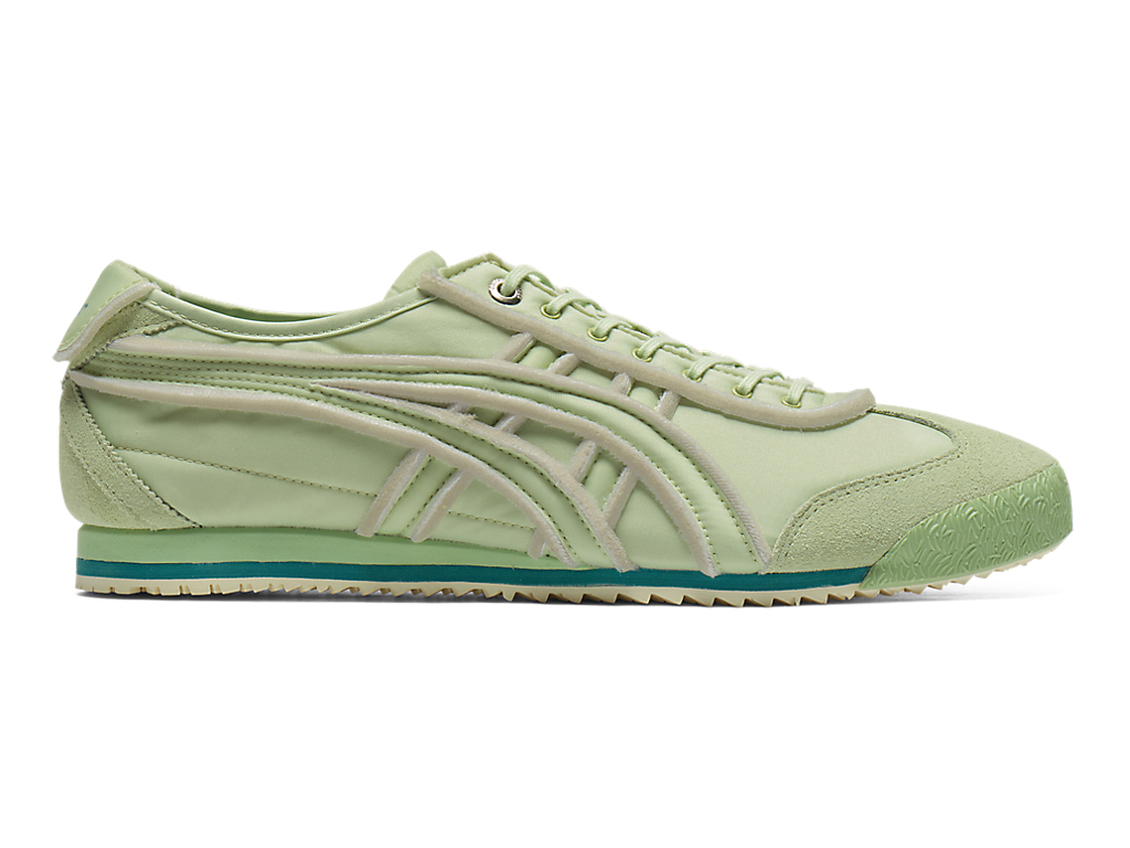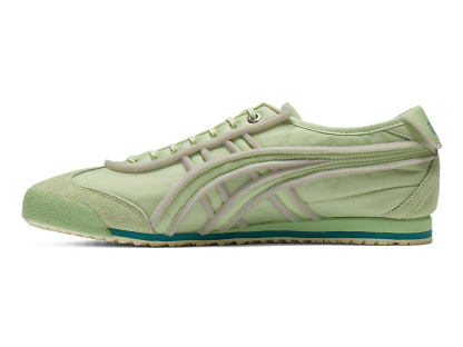 オニツカタイガーストライプや薄底のスタイル、かかとのクロスパーツなど「MEXICO 66」のアイコニックな要素を継承しながら再構築したアイテム。